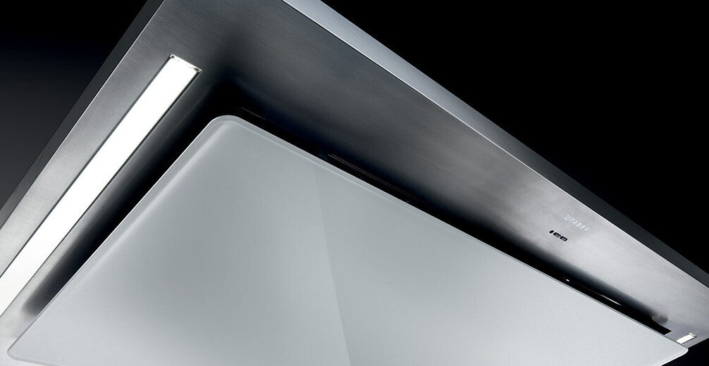 SKYPAD 2.0 ЛЕГКАЯ И УТОНЧЕННАЯ ПОТОЛОЧНАЯ КУХОННАЯ ВЫТЯЖКА, РАСПОЛОЖЕННАЯ ПРЯМО НАД ВАРОЧНОЙ ПОВЕРХНОСТЬЮ