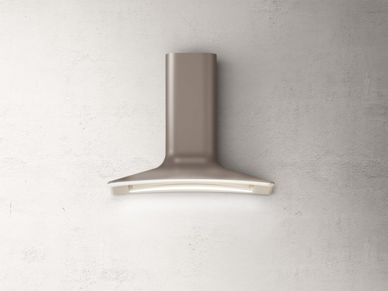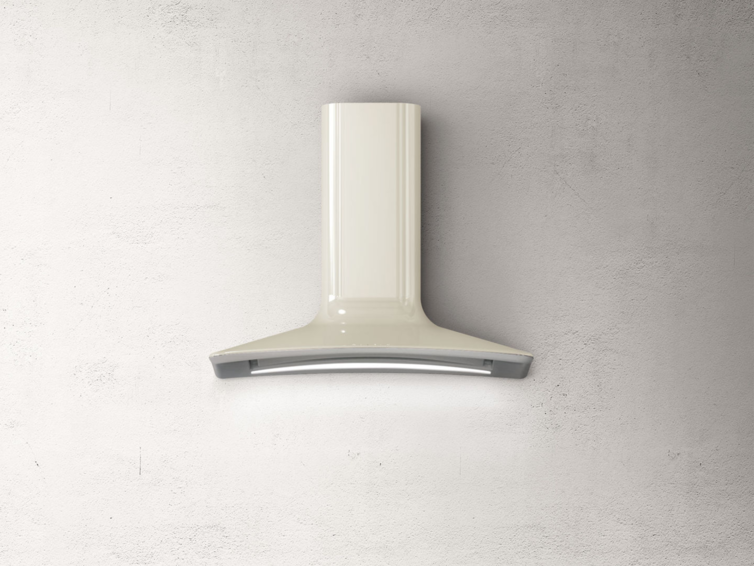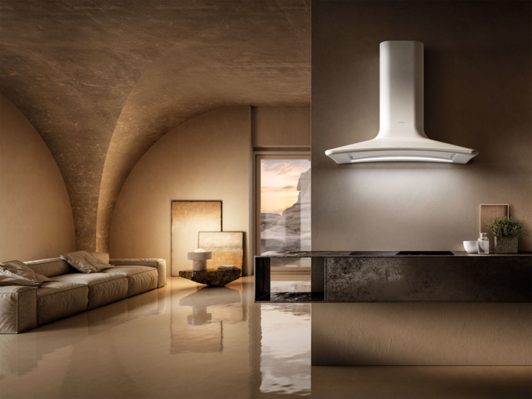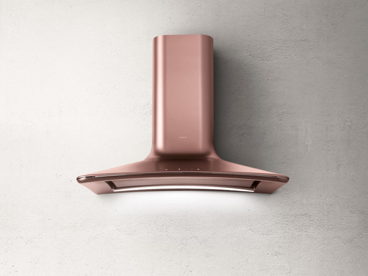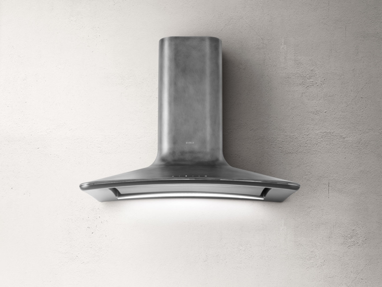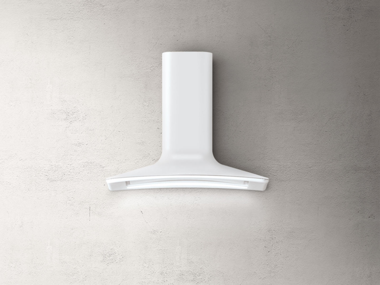 Дизайн приобретает изгибистые линии и актуальность, благодаря использованию технополимера, который эффектно смотрится на фоне тонкой линии из глянцевой стали, подчеркивающей его формы, что стало возможным вследствие эволюции каминной вытяжки.