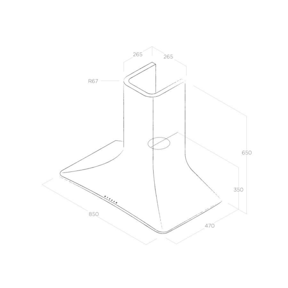 Дизайн приобретает изгибистые линии и актуальность, благодаря использованию технополимера, который эффектно смотрится на фоне тонкой линии из глянцевой стали, подчеркивающей его формы, что стало возможным вследствие эволюции каминной вытяжки