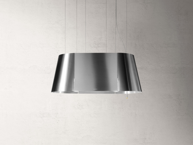 Благодаря богатому функционалу и простоте реализации устройство станет не просто вспомогательным кухонным оборудованием, но и полноценной частью интерьера. Корпус, выполненный в цвете «нержавеющая сталь», крепится к потолку на тонкие металлические тросы. Функционал. Модель работает в режиме рециркуляции — фильтрации воздуха. Угольный фильтр с продолжительным сроком службы (до 3-х лет) поставляется в комплекте. Индикатор насыщения сообщит о необходимости очистки или замены фильтра. Удобный стержень Magic Wand помогает с легкостью управлять четырьмя скоростями вытяжки и освещением. Устройство оснащено 8 яркими галогенными лампами, что делает вытяжку-люстру самостоятельным осветительным прибором на кухне. Преимущества. Датчик увеличения температуры запустит устройство на в работу на первой скорости по достижении показателя 70 градусов. Опционально можно приобрести пульт дистанционного управления. Угольный фильтр пригоден для мытья в посудомоечной машине при низкой температуре и бережном режиме. Модель получила премию на престижном конкурсе дизайна ADI DESIGN INDEX 2005.