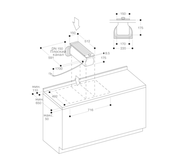 Вытяжка, встраиваемая в столешницу, без мотора. Дополнительно комплектуется соединительным элементом диаметром 150 мм для подключения гофр сзади VL200 – артикул AD851041 (стоимость 108 000 тенге) и гибким соединительным элементом диаметром 150 мм для VL200 (стоимость 126 000 тенге) • Комбинируется с другими Vario-панелями серии 200 • Автоматический режим – оптимальный режим работы будет выбран автоматически с помощью сенсора загрязнений • Удобная система монтажа • Низкий уровень шума с мотором AR 410 110 • Отвод или рециркуляция воздуха
