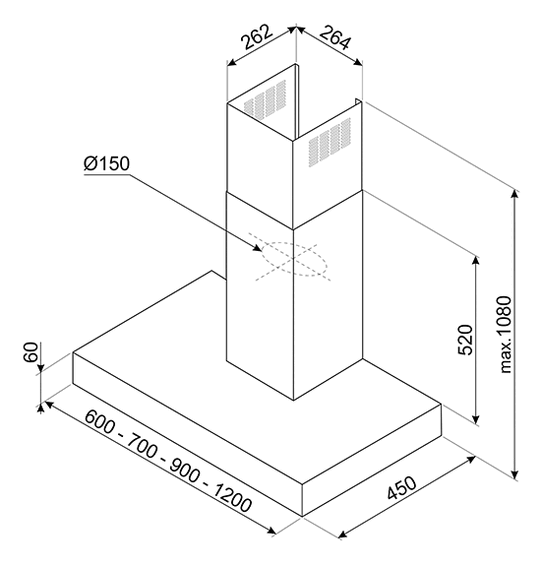 Количество скоростей - 3 1 скорость: Максимальная производительность - 260 Номинальная мощность - 132 Давление - 8 Уровень шума - 49 2 скорость: Максимальная производительность - 358 Номинальная мощность - 152 Давление - 16 Уровень шума - 57 3 скорость: Максимальная производительность - 473 Номинальная мощность - 175 Давление - 28 Уровень шума - 64 Интенсивный режим: Максимальная производительность - 686 Номинальная мощность - 222 Давление - 72 Уровень шума - 72 Количество фильтров - 2 Мин. расстояние от газовой варочной панели - 650 Мин. расстояние от электрической варочной панели - 500 Максимальная производительность - 820