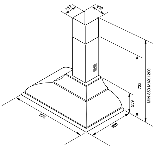 Количество скоростей - 3 1 скорость: Максимальная производительность - 326 Номинальная мощность - 199 Давление - 465 Уровень шума - 50 2 скорость: Максимальная производительность - 439 Номинальная мощность - 231 Давление - 510 Уровень шума - 57 3 скорость: Максимальная производительность - 549 Номинальная мощность - 260 Давление - 542 Уровень шума - 62 Интенсивный режим: Максимальная производительность - 794 Номинальная мощность - 280 Давление - 578 Уровень шума - 71 Количество фильтров - 3 Мин. расстояние от газовой варочной панели - 750 Мин. расстояние от электрической варочной панели - 650 Максимальная производительность - 820
