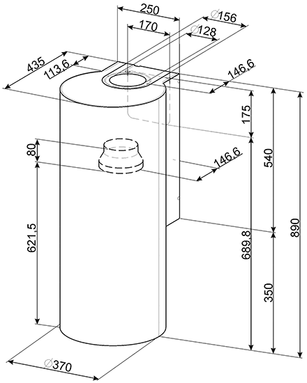 Вытяжка настенная, 37 см, нержавеющая сталь