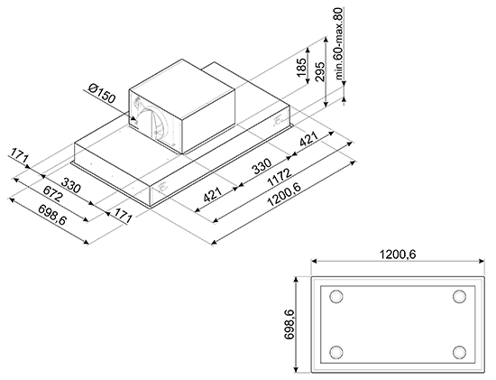 Количество скоростей - 3 1 скорость: Максимальная производительность - 293 Номинальная мощность - 166 Давление - 11 Уровень шума - 51 2 скорость: Максимальная производительность - 420 Номинальная мощность - 208 Давление - 22 Уровень шума - 58 3 скорость: Максимальная производительность - 655 Номинальная мощность - 254 Давление - 53 Уровень шума - 67 Интенсивный режим: Максимальная производительность - 808 Номинальная мощность - 276 Давление - 80 Уровень шума - 71 Количество фильтров - 2 Мин. расстояние от газовой варочной панели - 650 Мин. расстояние от электрической варочной панели - 500 Максимальная производительность - 820