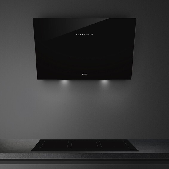 Вытяжка настенная, 90 см, черное стекло