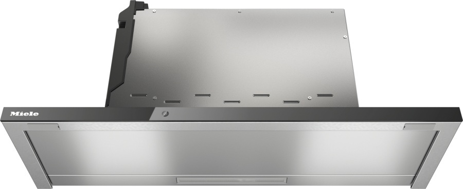 Вытяжка с плоской выдвижной панелью Элегантный дизайн Панель управления чёрный обсидиан шириной 90 см Сенсорное управление SmartControl Светодиодная планка для равномерной подсветки Десятислойный жироулавливающий фильтр из нержавеющей стали Объединение в сеть с системой Miele@home Автоматическая функция Con@ctivity 3.0 Остаточный ход мотора 5 и 15 минут