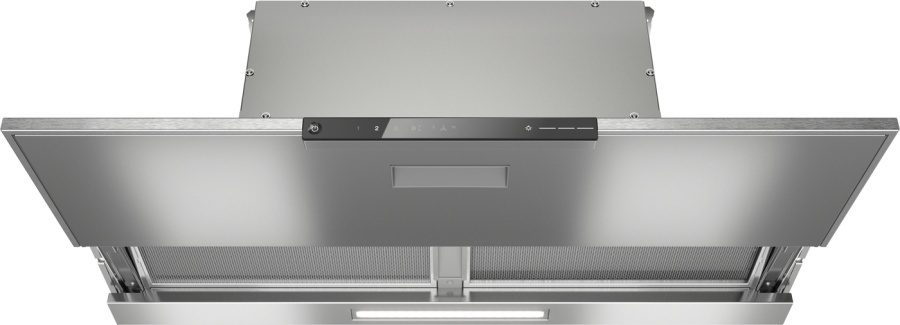 Вытяжка с плоской выдвижной панелью Плоская панель из нержавеющей стали шириной 90 см Сенсорное управление SmartControl White Светодиодная планка для равномерной подсветки Два десятислойных жироулавливающих фильтра из нержавеющей стали Объединение в сеть с системой Miele@home Автоматическая функция Con@ctivity 3.0 Остаточный ход мотора 5 и 15 минут Индикатор насыщения фильтров