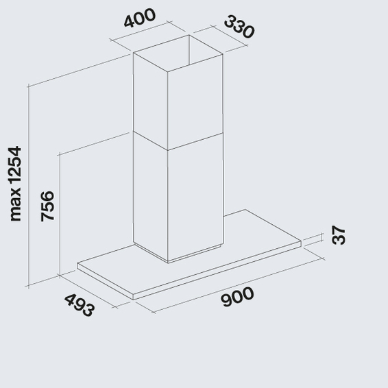 Высота корпуса вытяжки (мм): 493