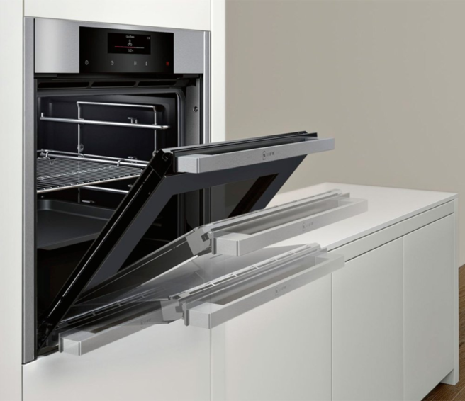 Продукция Компания Neff производит встраиваемую бытовую технику премиум-класса. Особенно удачно она подходит для комплектации кухонь немецких производителей. Духовые шкафы. Встраиваемые духовки Neff снабжены уникальные инновационными функциями: EasyClean — стенки духовки покрыты специальным керамическим составом. Чтобы очистить духовку, нужно просто налить в противень немного воды и включить ее. Горячий пар поможет легко удалить загрязнения. CircoTherm — эта запатентованная технология позволяет одновременно готовить еду на нескольких уровнях без смешивания запахов. NeffLight — уникальная система освещения. Она состоит из специальных ламп на задней стенке и зеркал в дверце, что позволяет освещать каждый уголок духовки. Slide&Hide — после открытия дверцы она может полностью убираться под духовой шкаф. Это экономит место на кухне и облегчает доступ к духовке. Некоторые духовки Neff могут выполнять функции пароварки, гриля и микроволновой печи. Холодильники и морозильные камеры Инновационная функция FreshSafe позволяет дольше сохранять свежесть продуктов благодаря тому, что в камере регулируется температура и влажность. Опция NoFrost не дает льду скапливаться на стенках холодильной или морозильной камеры. Варочные панели Индукционные варочные панели Teff имеют функцию FlexInduction. Вы можете поставить кастрюлю в любое место варочной панели, и именно там она будет нагреваться. Управлять приготовлением пищи можно со съемного магнитного пульта TwistPad. Вытяжки Вытяжки Neff полностью автоматизированы — они начинают работать при включении плиты, регулируют свою мощность в зависимости от ситуации на кухне. Есть функция шумоизоляции. Посудомоечные машины Встроенные посудомоечные машины Neff полностью автоматизированы. Машины сама выберет режим мойки в зависимости от степени загрязнения вашей посуды. Машины работают очень тихо на уровне 42 дБ. Это соответствует громкости тихого разговора. Кофемашины В каталоге Neff вы увидите элитные встраиваемые кофемашины с функцией OneTouch. Эта функция позволяем нажатием одной кнопки готовить разнообразные кофейные напитки. Стиральные машины Встраиваемые стиральные машины Neff обеспечивают бережную и экономичную стирку белья. Они экономичны, удобны, почти бесшумны. Приборы Neff имеют функцию Home Connect. Она позволяет дистанционно управлять техникой при помощи мобильного приложения. кулинарные таланты, предоставив широкие еще Вы можете подробно изучить ассортимент Neff в каталоге компании на нашем сайте. Партнеры В России компания появилась в 2005 году. В Казахстане партнером Neff является компания Акапэлл. В наших фирменных магазинах вы можете познакомиться с продукцией компании Neff. Квалифицированные консультанты помогут вам с выбором. Действуют акции и скидки.