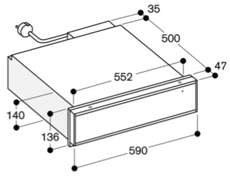Шкаф для подогрева посуды WS461110, управление с помощью поворотных регуляторов. • Встраиваемая модель, обьем 19 л • Количество режимов работы: 4 • Диапазон температуры (°С): 40 – 80 • Подогрев чашек экспрессо: 80 • Подогрев тарелок: 12 • Подогрев пищи • Подъем дрожжевого теста