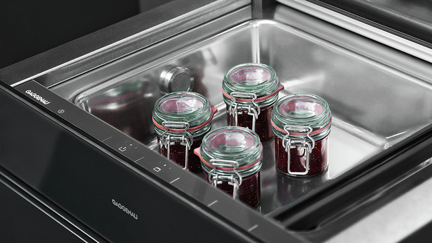 Встраиваемый вакууматор Gaggenau серебристого цвета с тремя режимами вакуумирования. Внутренняя камера модели выполнена из нержавеющей стали. Интуитивное сенсорное управление и стеклянная крышка для безопасности использования, открывающаяся автоматически после завершения процесса вакуумизации. • Встраивается в нишу высотой 14 см • Вакуумирующий короб из нержавеющей стали, высота до 95 мм • 3 уровня вакуумирования в коробе, макс. 99%. • 3 уровня вакуумирования вне короба, макс. 90%. • Автоматическое распознавание подключения для внешнего вакуумирования • Установка вровень с мебельным фронтом • Дверца без ручки • Выдвижение нажатием • Вакуумирование для приготовления методом сувид. • Вакуумирование для быстрого маринования и ароматизации. • Более длительное хранение благодаря вакуумированию. • Вакуумирование внешних контейнеров. • Внешнее вакуумирование жидкостей в бутылках. • Сенсорное управление. • Объем 7 литров. • Максимальная загрузка 10 кг. • Максимальный размер пакетов для вакуумирования ширина 240 мм x длина 350 мм. • 3 уровня запаивания для пакетов из материалов разной плотности. • Запаивающая планка, антипригарное покрытие, съемная. • Защитная стеклянная крышка, открывается автоматически после вакуумирования. • Приподнятая вакуумирующая платформа, 44 мм. • Полезное пространство в коробе для вакуумирования: длина 275 мм х ширина 210 мм. • Предотвращение вытекания жидкостей во время внешнего вакуумирования. • Программа сушки. • Функция предупреждения.