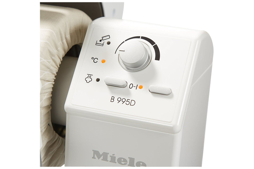 Удобное глажение сидя: гладильный вал приводится в движение нажатием на педаль, а гладильная планка опускается на текстильное изделие и прижимает его. Удобное рабочее положение уменьшает нагрузку на спину и оставляет руки свободными. Опрос покупателей в проведённом компанией Miele исследовании показал, что 95% покупателей гладильных катков Miele «довольны» и «очень довольны» покупкой.