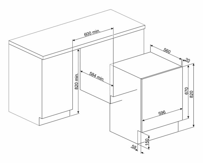 Встраиваемая стиральная машина, 60 см, класс А++В, цвет белый. Загрузка 7 кг, отжим до 1400 об./мин.