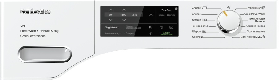 Загрузка 8 кг 23 программы стирки Дисплей DirectSensor Система PowerWash 2.0 TwinDos CapDosing WiFiConn@ct Функция EcoFeedback Счётчик расхода воды