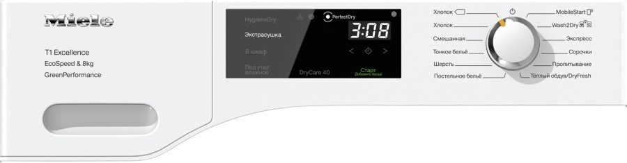 Загрузка 8 кг 10 программ сушки Дисплей DirectSensor White Функция DryCare 40 HygieneDry DryFresh Wash2Dry Светодиодная подсветка барабана Система PerfectDry