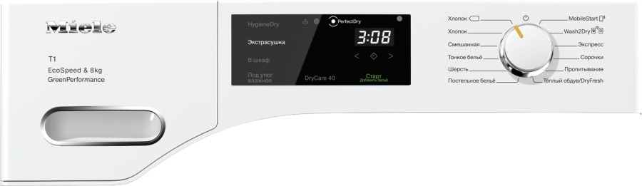 Загрузка 8 кг 10 программ сушки Дисплей DirectSensor Функция DryCare 40 HygieneDry DryFresh Wash2Dry Светодиодная подсветка барабана Система PerfectDry