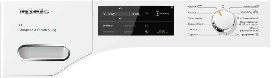 Загрузка 9 кг 20 программ сушки Дисплей ConfortSensor Функция DryCare 40 HygieneDry DryFresh Функция PowerFresh Wash2Dry Сотовый барабан SilenceDrum