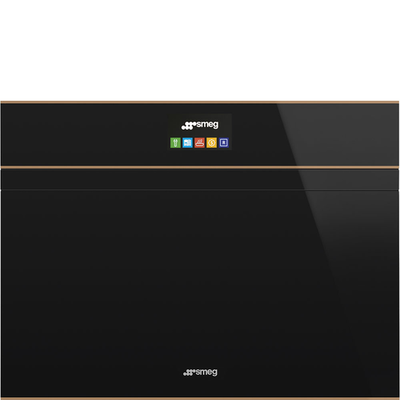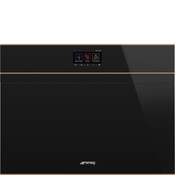 Компактный многофункциональный духовой шкаф, комбинированный с микроволновой печью, 60 см, высота 45 см, 14 функций, черное стекло, профиль медный.