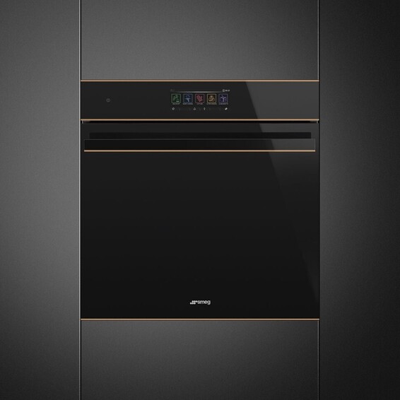 Многофункциональный духовой шкаф с технологией Multitech, 60 см, 25 функций, чёрное стекло Eclipse, медный профиль.