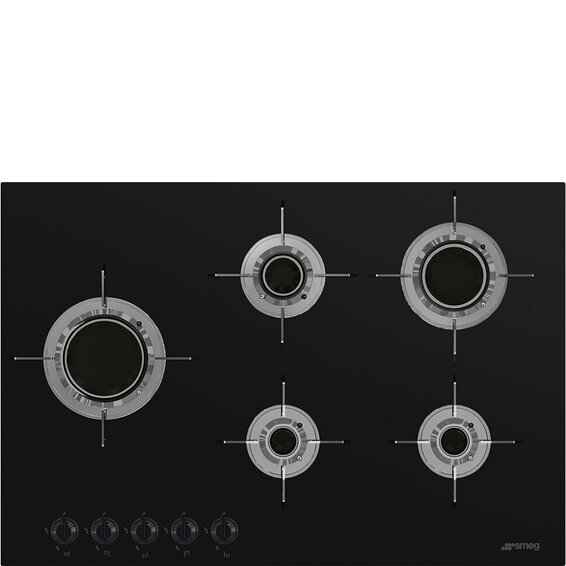Газовая варочная панель, 75 см, черная стеклокерамика, прямой край