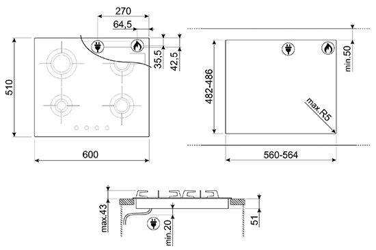 Количество зон приготовления - 4 Количество газовых зон приготовления - 4 Мощность 1-й зоны - 1.00 Мощность 2-й зоны - 2.80 Мощность 3-й зоны - 1.60 Мощность 4-й зоны - 1.60 Газ-контроль - Да Автоматический электроподжиг - Да Тип газа - G20 природный газ Стандартный вырез - 482-486x560-564