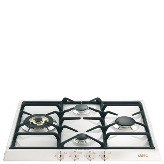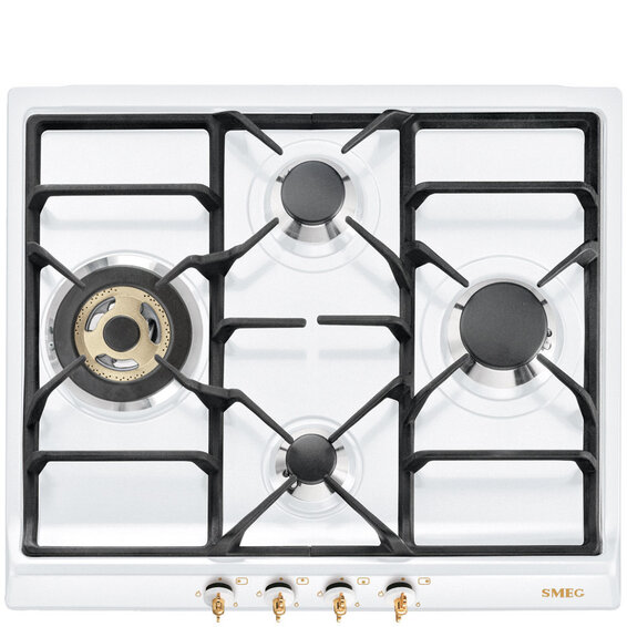 Газовая варочная панель, 60 см, белый, фурнитура позолоченная