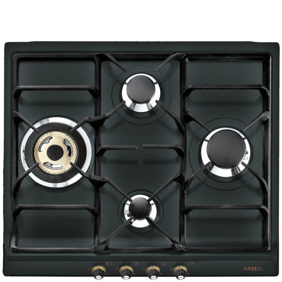 Газовая варочная панель, 60 см, антрацит, фурнитура латунная