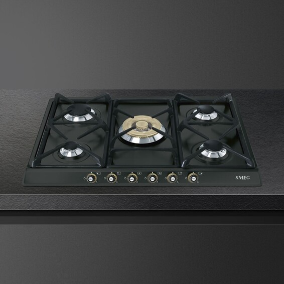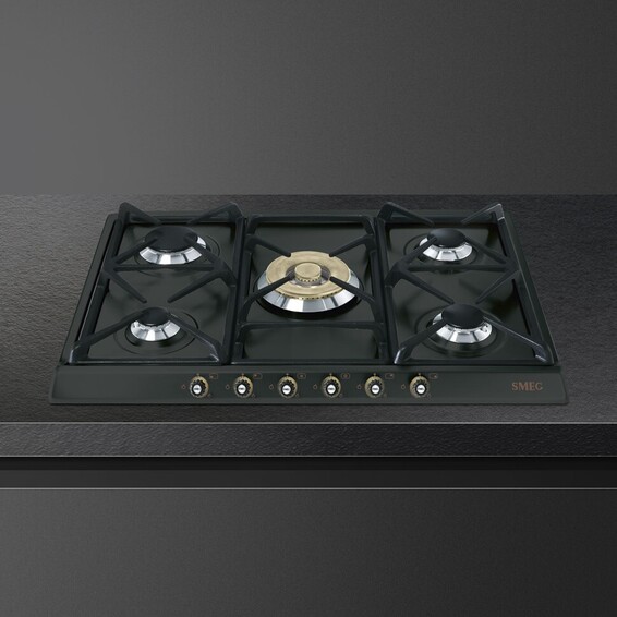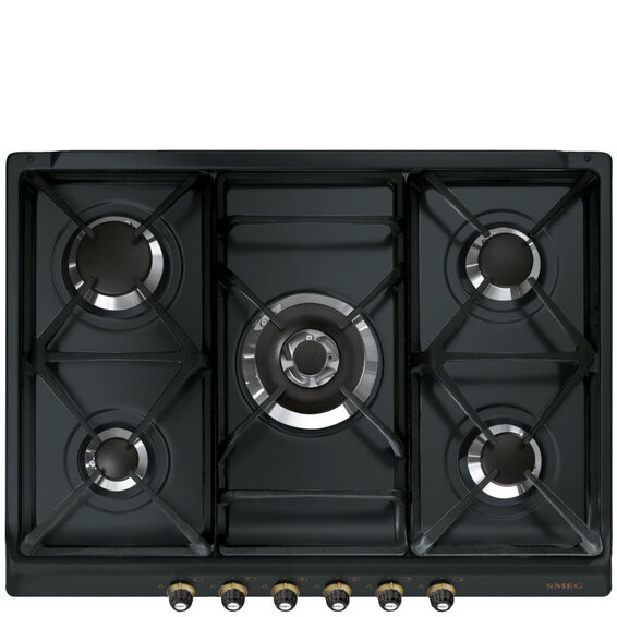 Газовая варочная панель, 70 см, антрацит, фурнитура латунная