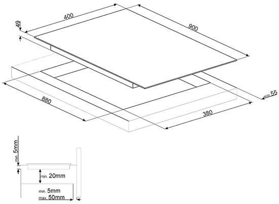 Индукционная варочная панель, 90 см, прямой край, фронтальный край скошенный