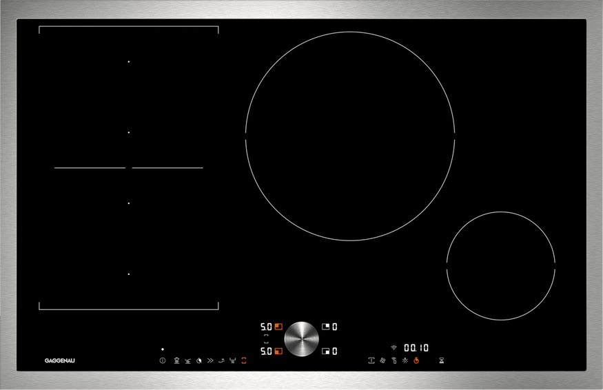 Gaggenau CI282111 — индукционная варочная панель с рамкой из нержавеющей стали. Имеет 4 зоны нагрева разной мощности, в том числе и прямоугольные, которые могут быть объединены в зону flex. Температуру посуды можно контролировать с помощью сенсора нагрева. Безопасность эксплуатации обеспечивают двухпозиционные индикаторы остаточного тепла. Модель представлена с рамкой из нержавеющей стали. • Для встраивания на одном уровне со столешницей • Возможность объединения прямоугольных конфорок в зону flex. • Свободное размещение посуды внутри зоны flex. • Сенсор нагрева для контроля температуры кастрюли • Функция разделения варочной поверхности на предустановленные зоны нагрева для профессионального приготовления • Сенсор жарки для контроля температуры сковороды • Панель управления Twist-Pad со съемным магнитным переключателем • Простое управление всеми функциями с помощью двухцветного дисплея
