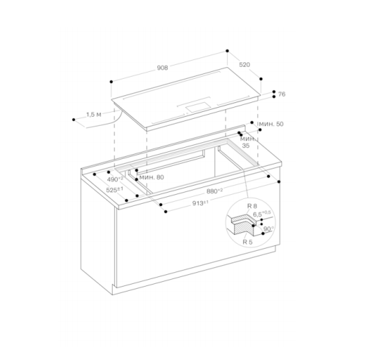 Ширина ниши (мм): 887
