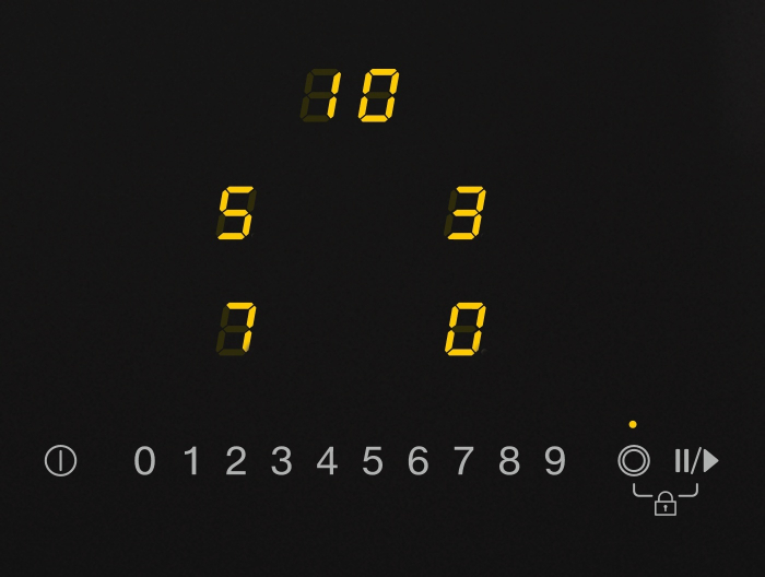 Встраивается заподлицо 4 конфорки HiLight с автоматикой закипания Управление EasySelect с желтой подсветкой цифр, выбором мощности на цифровой шкале для всех конфорок Ступени мощности 1-9 Функция Stop&Go Таймер Индикаторы остаточного тепла Защитное отключение Блокировка включения Габариты ниши (Ш x Г): 570/596 х 470/496 мм (вырез ступенькой) Страна-производитель: Германия Гарантия 2 года
