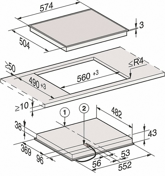 С сенсорным управлением, с 4 зонами нагрева Привлекательный дизайн – шириной 574 мм с обрамляющей рамкой Универсально – 4 зоны, вкл. 1 зону расширения Vario