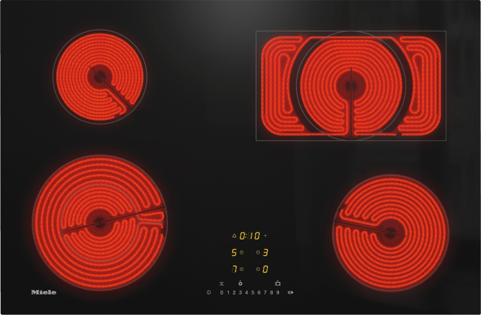 Панели конфорок Miele могут иметь зоны нагрева различной формы и размеры. Это позволяет использовать самую разнообразную посуду. У многих панелей конфорок есть дополнительные зоны расширения нагрева.