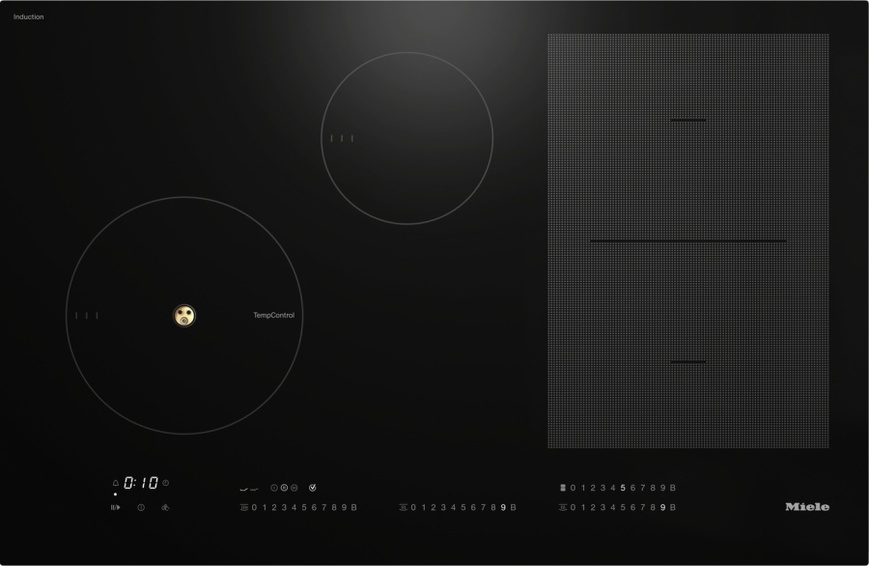 Встраивается сверху и заподлицо 4 индукционные конфорки с автоматикой закипания, в т. ч. 2 с возможностью объединения в 1 зону PowerFlex Сенсорная панель управления SmartSelect White с отдельными клавишами 0–9 для каждой конфорки Ступени мощности 1–9 Функция TempControl (3 уровня нагрева) Функция Stop&Go Booster TwinBooster Функция поддержания тепла
