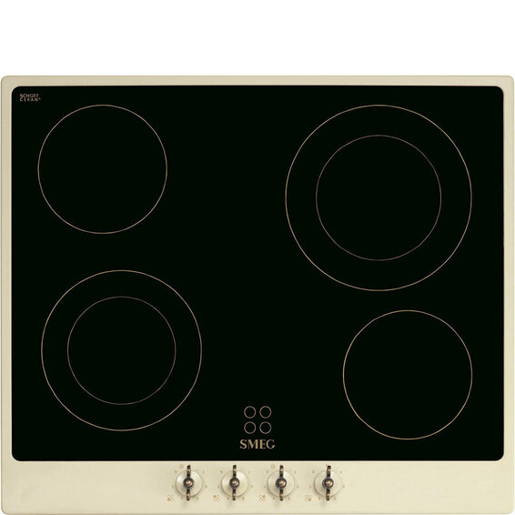 Cтеклокерамическая варочная панель, 60 см, кремовая, фурнитура латунная