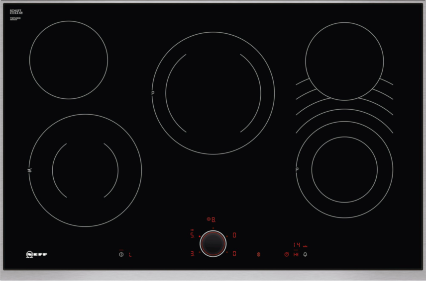 Количество конфорок: Независимая электрическая варочная панель с управлением TwistPad , рамка Comfort из стали , 1 двухконтурная конфорка, 17 ступеней мощности