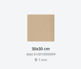 Представлена в размерах: 30х30 см. Доступна с натуральной и полированной поверхностями. Цветовая палитра и артикулы: Platino,Cadmio, Oro, Rame, Bronzo, Fluoro, Cobalto, Titanio. Применение - пол и стены.