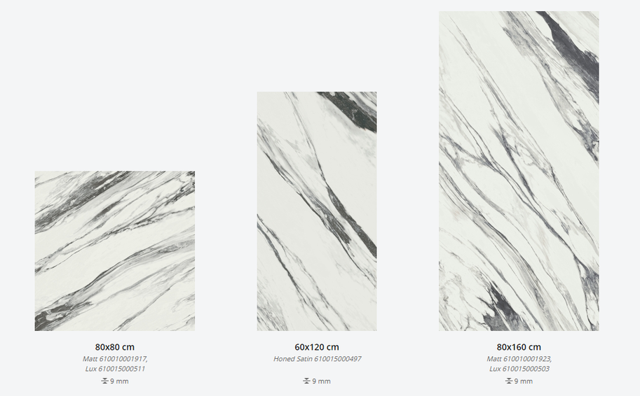 Представлена в размерах: 80х80 см, 60х120 см, 80х160 см, 120х278 см. Доступна с натуральной и патинированной поверхностью. Декор для плитки: 29.2x29.2 см, 28x48 см, 30x30 см, 26x75 cм. Применение - пол и стены.