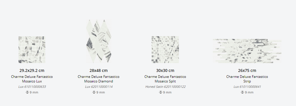 Коллекция объединяет уникальные сорта мрамора — символы красоты и эксклюзивности. Коллекция Charme Deluxe выводит на новый уровень представление о роскоши и предлагает новую бескомпромиссную гамму из восьми оттенков, вдохновленных мрамором с очень яркими характеристиками. Благодаря разнообразию цветов рождается необычный стиль, способный преобразить любое пространство. Классическое или смелое сочетание оттенков создаст уникальную и завораживающую атмосферу в каждом интерьере.