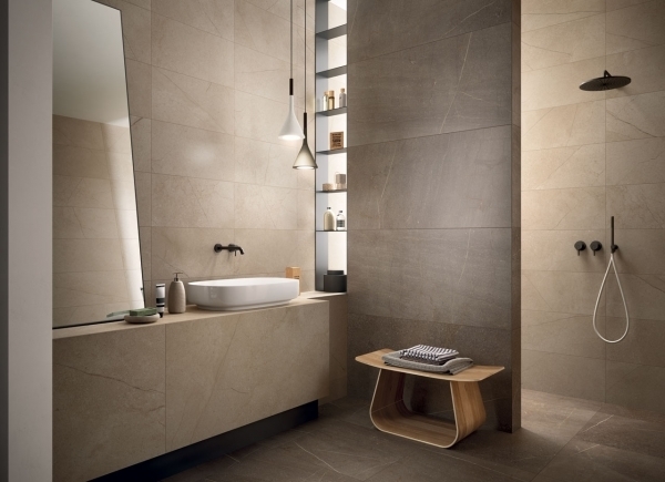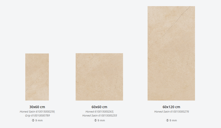 Представлена в размерах: 30х60 см, 60х60 см, 60Х120 см. Доступна с патинированной, шлифованной и структурированной поверхностями. Декор для плитки: 30х30 см, 28х78 см. Применение - пол и стены.