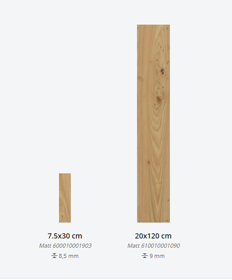 Представлена в размерах: 7,5х30 см, 20х120 см. Доступна с натуральной поверхностью. Применение - пол и стены.