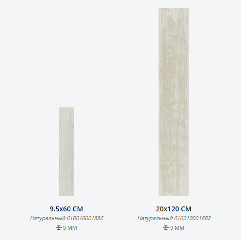 Представлена в размерах: 20х120 см, 9,5х60 см. Доступна с натуральной поверхностью. Применение - пол и стены.
