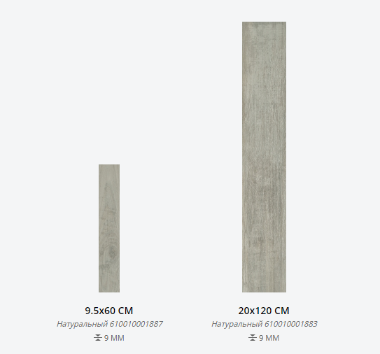 Представлена в размерах: 20х120 см, 9,5х60 см. Доступна с натуральной поверхностью. Применение - пол и стены.