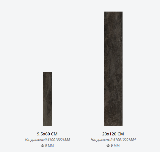 Представлена в размерах: 20х120 см, 9,5х60 см. Доступна с натуральной поверхностью. Применение - пол и стены.