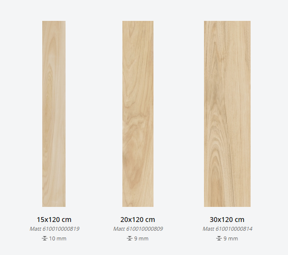 Представлена в размерах: 15х120 см, 20х120 см, 30х120 см. Доступна с натуральной поверхностью. Применение - пол и стены.