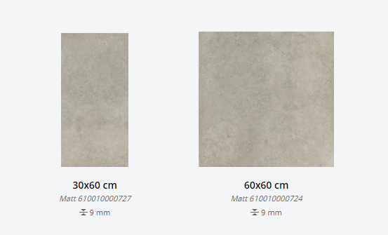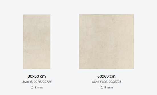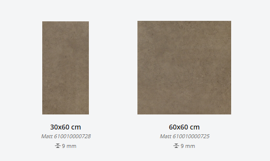 Представлена в размерах: 30х60 см, 60х60 см. Доступна с натуральной поверхностью. Цветовая палитра и артикулы: Ivory, Fog, Brown. Применение - пол и стены.