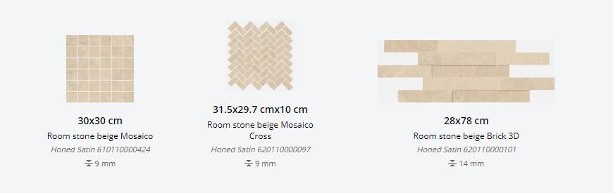 Представлена в размерах: 20х120 см. Декор для плитки: 30x30 см, 31,5x29,7 см, 28х78 см. Доступна с патинированной и структурированной поверхностями. Применение - пол и стены.