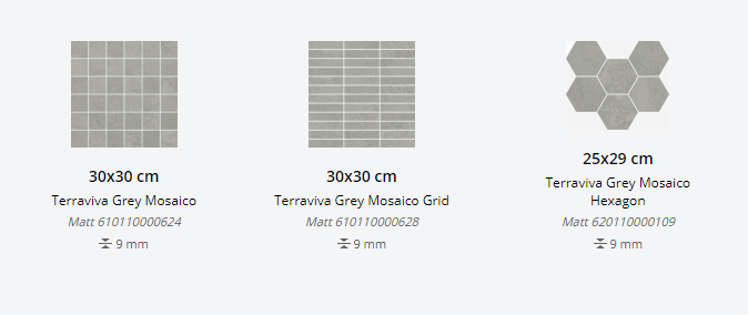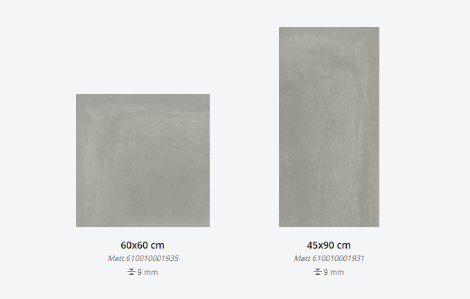 Представлена в размерах: 60х60 см, 45х90 см. Декор для плитки: 30x30 см, 25x29 см. Доступна с натуральной поверхностью. Применение - пол и стены.